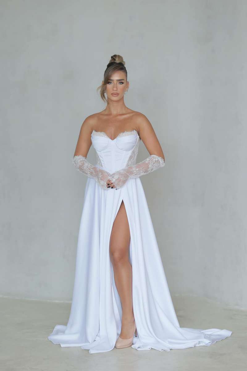 שמלה קיימת מקולקציה חדשה - 6000 - 7000 ש"ח להשכרה כולל הינומה כוללל התאמת מידות לסטודנטיות .