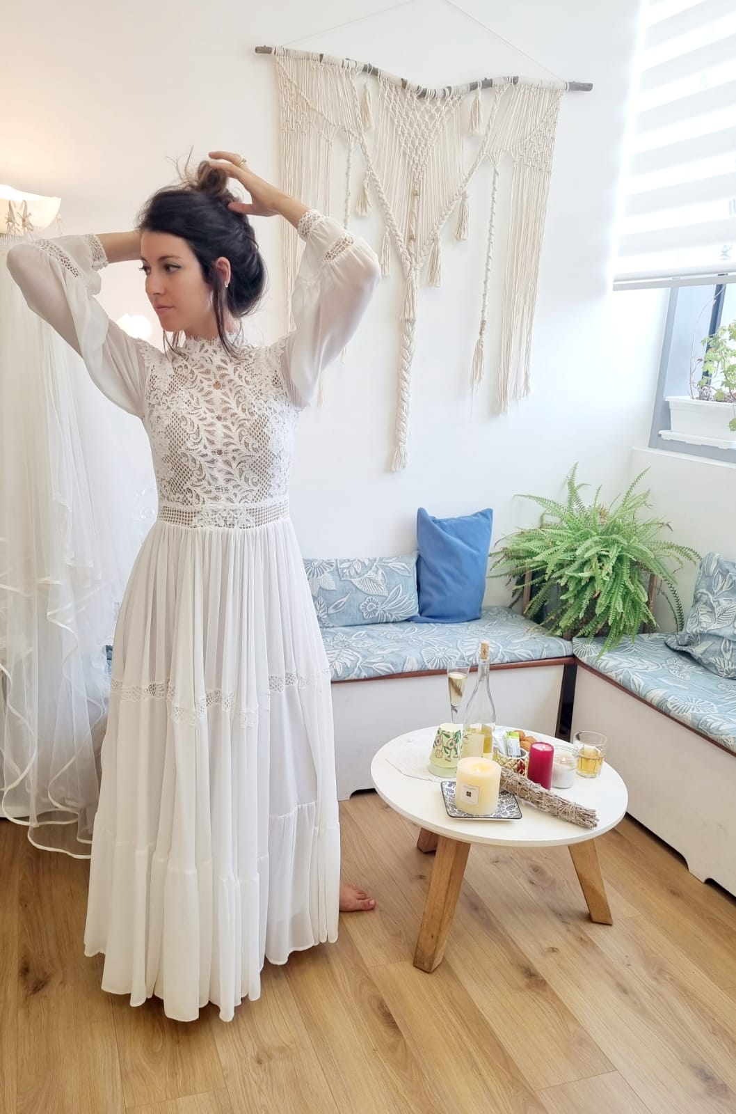 השמלות בסטודיו שונות ומגוונות ומושקעת בהן המון אהבה, בסטייל ה BOHO VINTAGE & ROMATIC . שמלות קיימות, גם חדשות, מושכרות ב 1800-3500 ₪, נוכל גם לעצב עבורך שמלה חדשה מאפס, לדגם המושלם בשבילך בתפירה אישית 4000-5500₪ להשכרה כולל הכל. דברי אתי